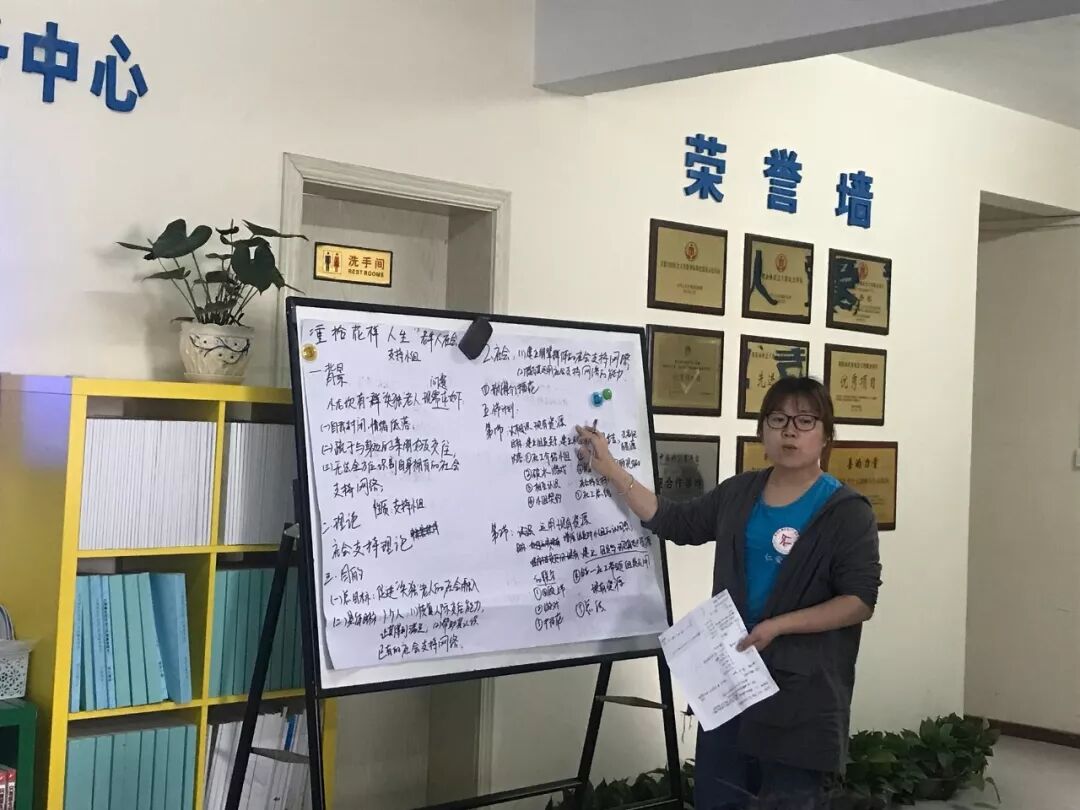 下午,中心组织社工通过实操练习,巩固上午所学到的理论知识。主要运用优势视角理论、活动理论、结构家庭治疗理论、人生回顾和社会支持理论五大理论来进行练习,然后对小组的内容进行修改,以提升社工的专业技能。