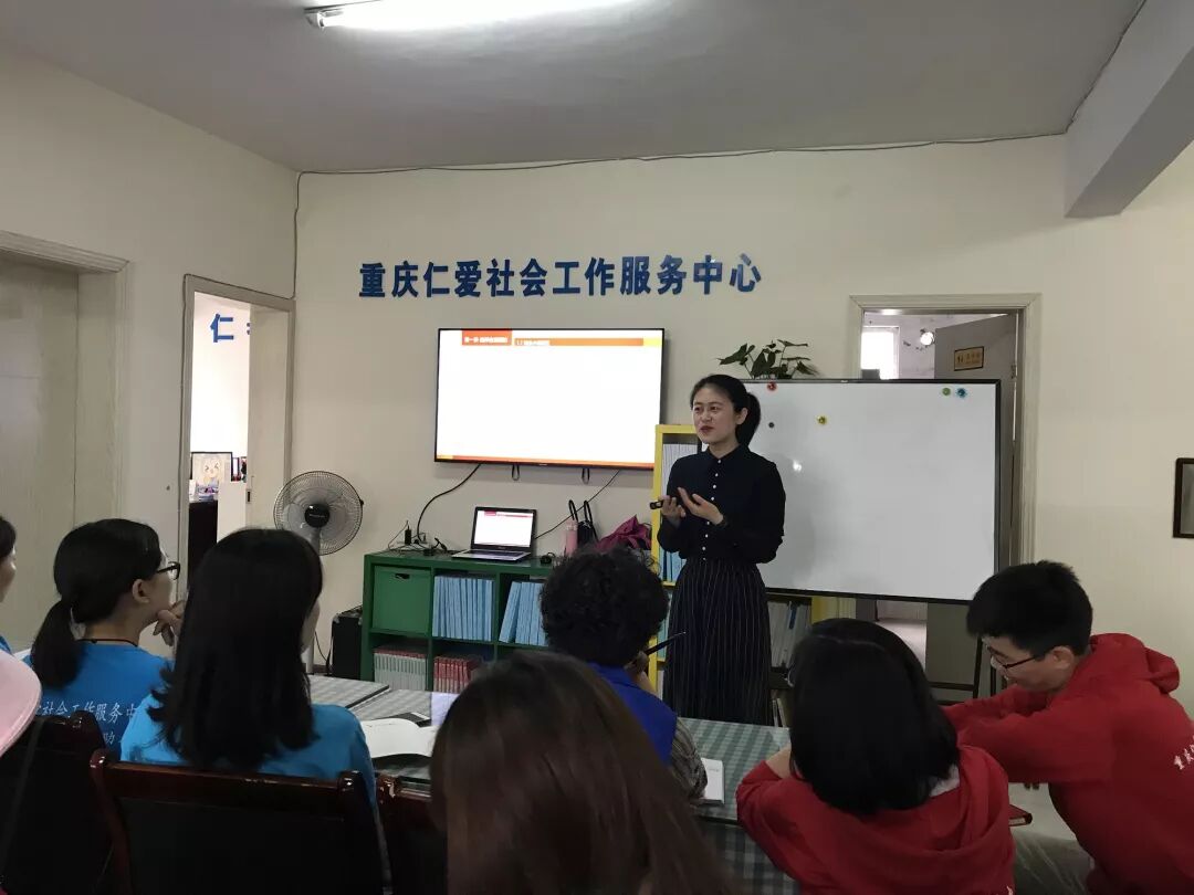 小组工作是社会工作的基本方法之一,也称为团体工作。2019年5月13日,为提高社工小组工作服务质量,重庆仁爱社会工作服务中心邀请到重庆城市管理职业学院讲师丁庆老师为中心全体员工开展小组工作理论及介入技巧培训。